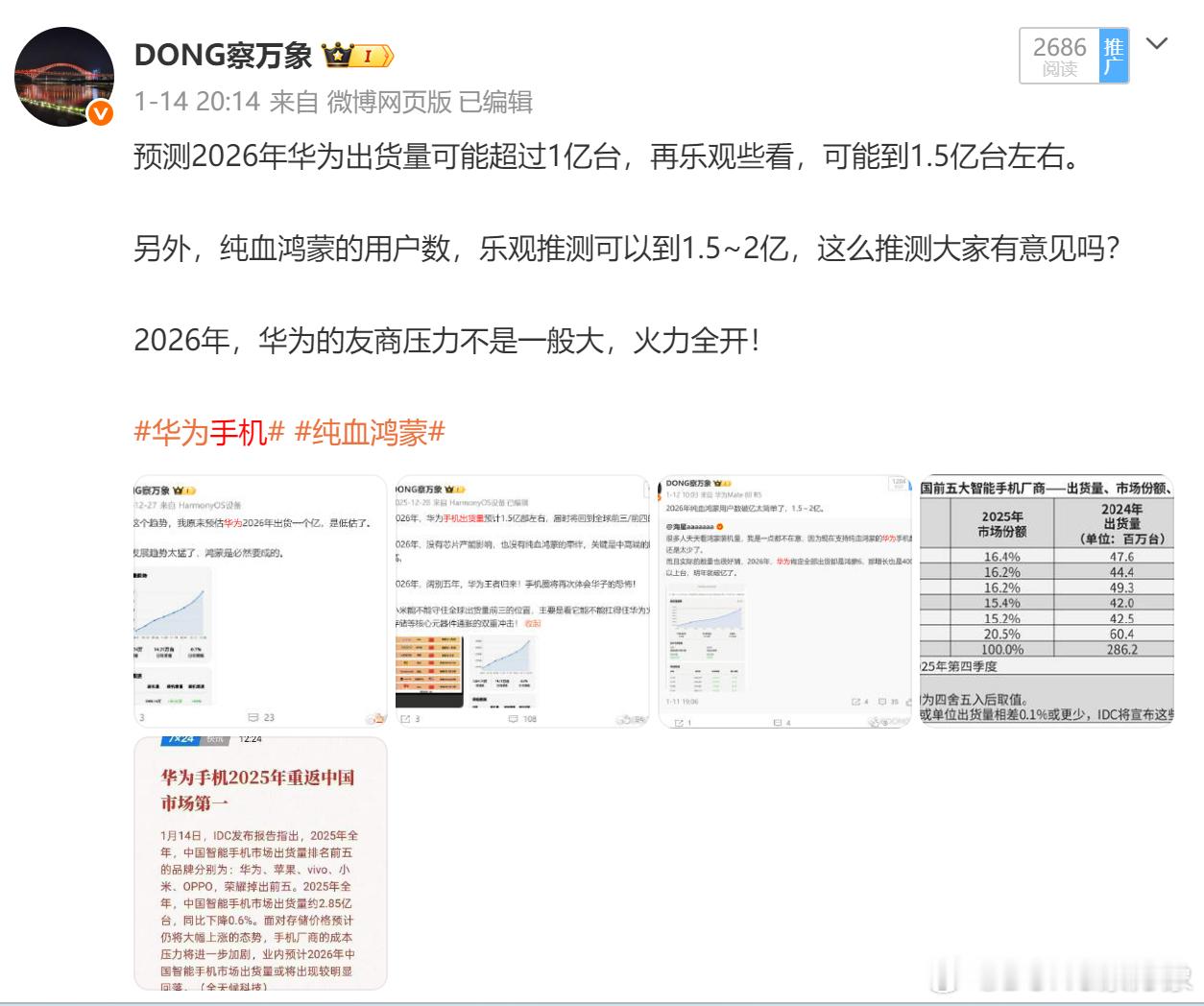 一亿部有什么问题?华为今年明年会让友商屁滚尿流。