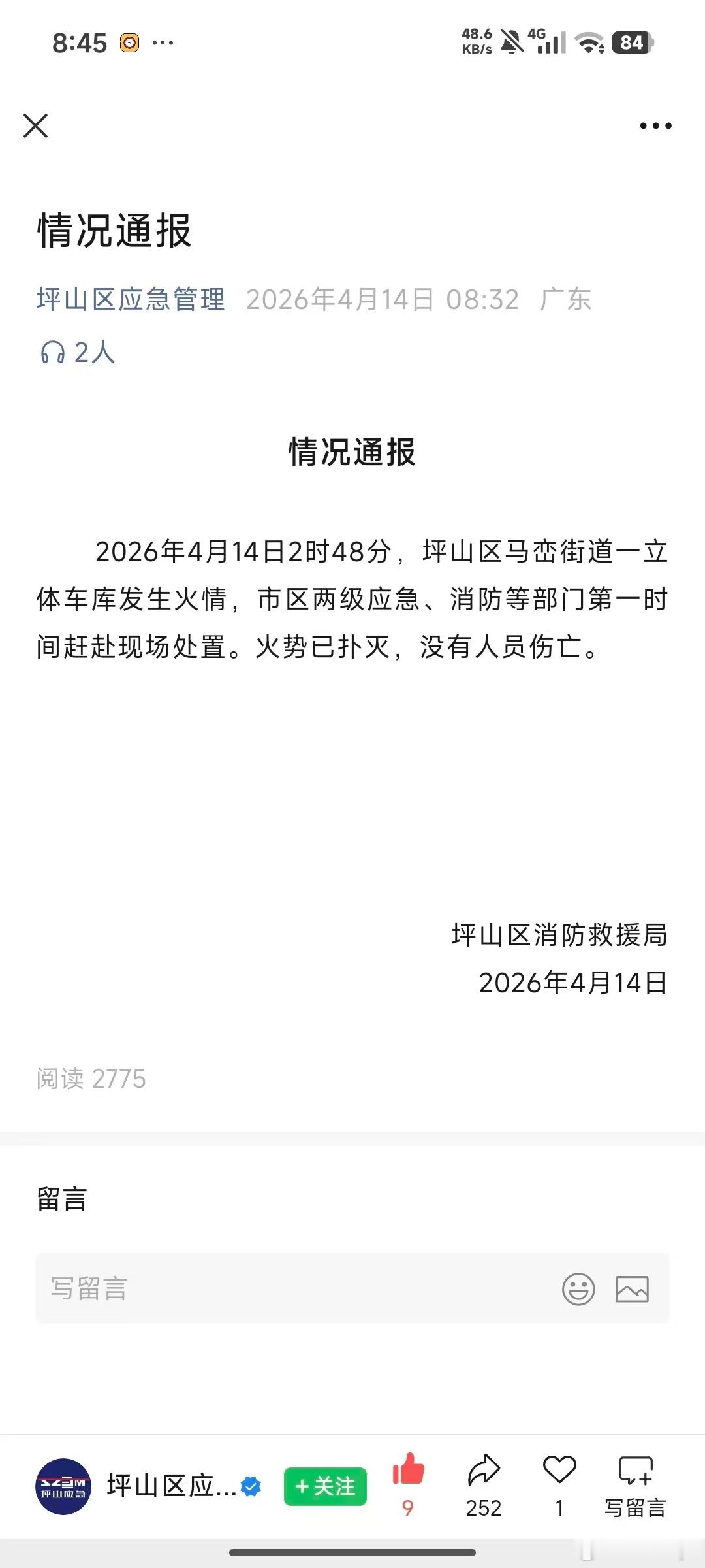 是坪山园区一立体车库发生火情,车库为试验及报废车辆专用停放区