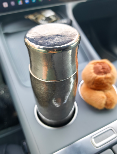 小米车机吐槽大会,这个水杯槽真的太小了,提车之后我的很多保温杯,包括一些专门适用于汽车的车载水杯都放不进去,或者放进去之后卡着很难拿出来,群里的车友也很多这样的反馈,后来买了一个能放进去的水杯,不到500毫升的水杯,高度又会影响到去操作屏幕,感觉只适合放那种三百毫升的小瓶矿泉水