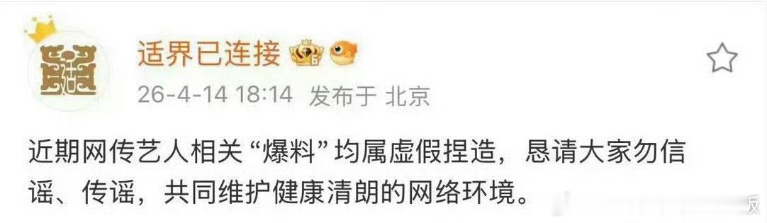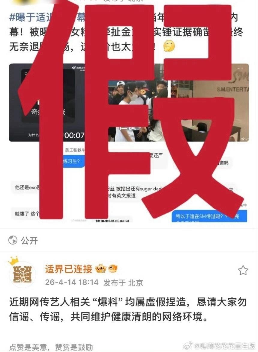 曝于适退团内幕于适工作室已迅速辟谣,造谣者实时取证中,大家不要人云亦云!于适作为小演员一直兢兢业业,专注自己,怎么就那么多人见不到于适好呢,最近一个演唱会多了好多嘿子,于适走到现在,每一步都能看到,每一步都清清白白!!!