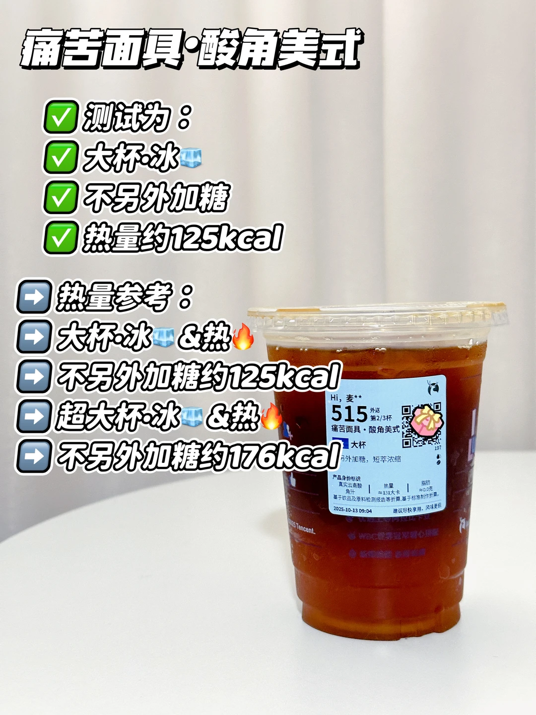 测试为:冰🧊不另外加糖 热量约125kcal