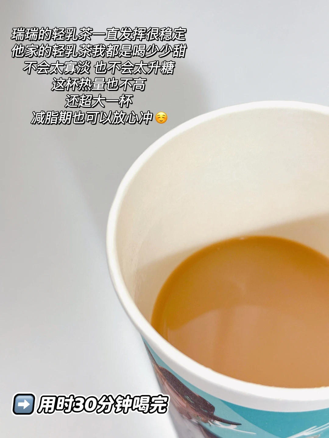 瑞瑞的轻乳茶一直发挥很稳定,他家的轻乳茶我都是喝少少甜,不会太寡淡,也不会太升糖〰️这杯热量也不高,还超大一杯,减脂期也可以放心冲☺️