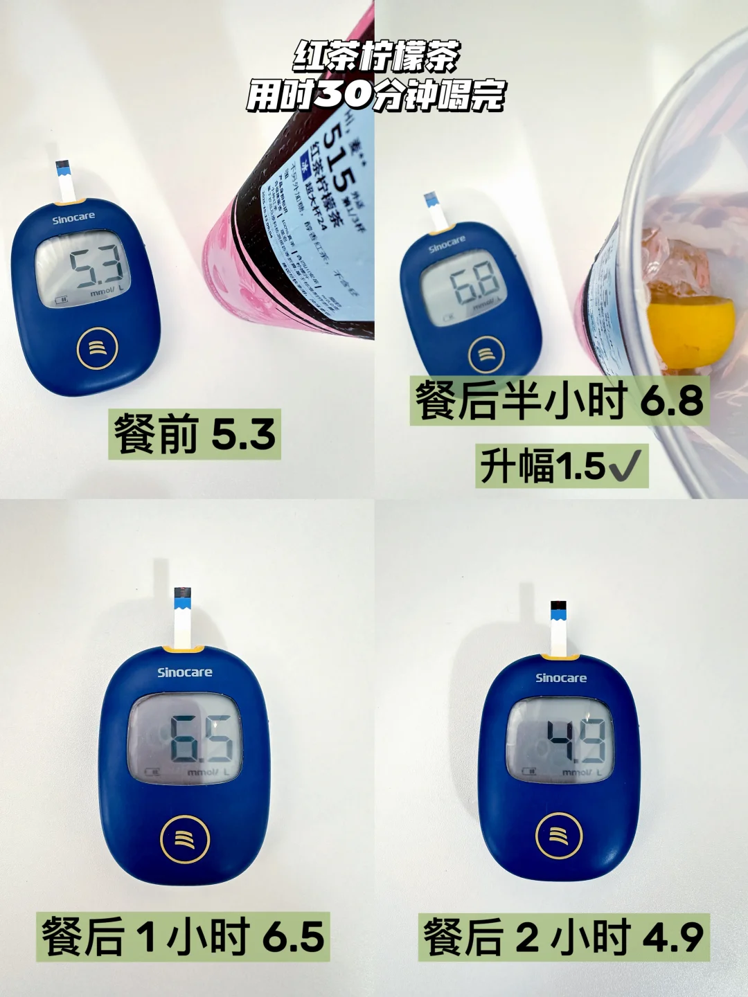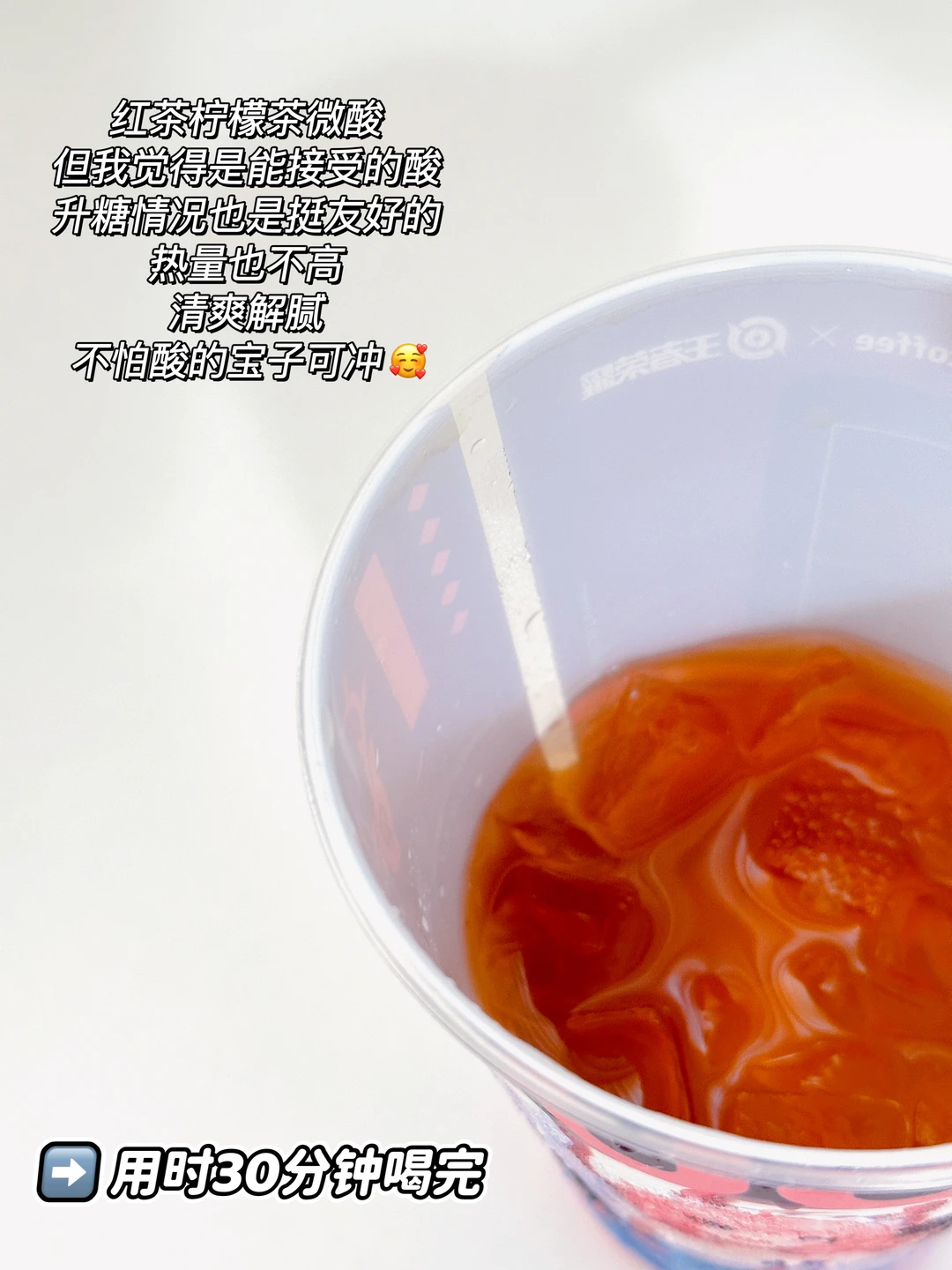 红茶柠檬茶微酸,但我觉得是能接受的酸,升糖情况也是挺友好的,热量也不高,清爽解腻,不怕酸的宝子可冲🥰