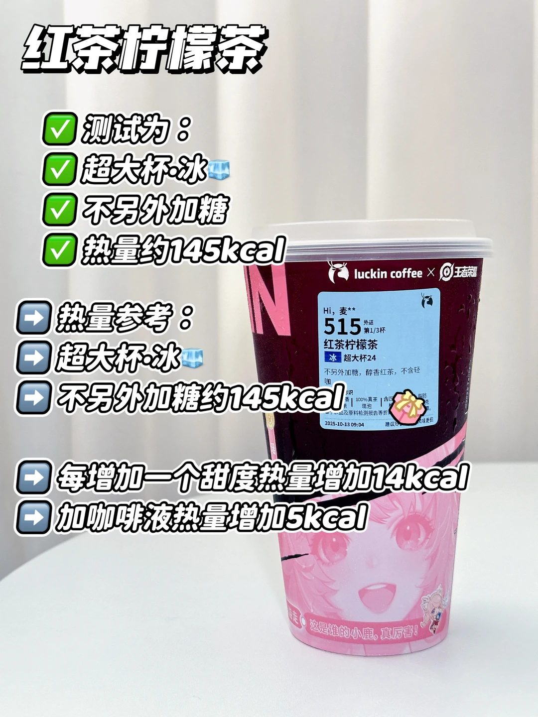 测试为:超大杯·冰🧊不另外加了 热量约145kcal