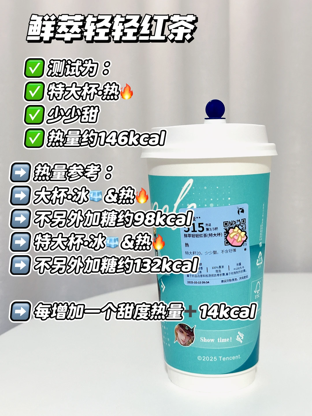 测试为:特大杯·热🔥少少甜 热量约146kcal