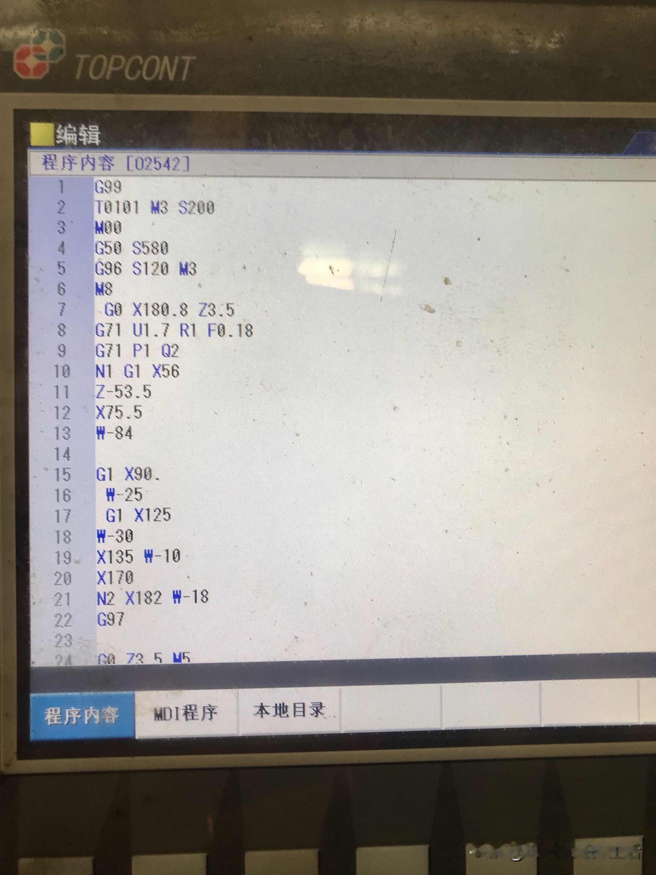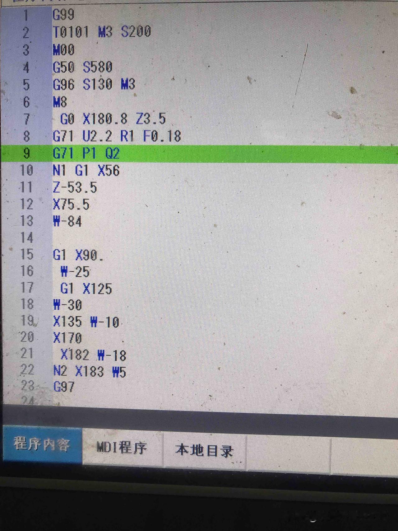 开数控车的大师傅都觉得撞机很正常的,而且不撞机不成大师傅。问题是撞机后能够快找出原因来,从而避免下次再犯同样的错误。这就是经验。话说昨天我就撞机了,感觉自己还是经验不足,明知道使用g71复合代码,在加工完最后一刀的时候会快速回到定位点,就这样刀头碰撞到了工件,可想而知。后面把程序改了一下,定位不用改,完美ok,总算从撞机中又积累了一点经验,还好老板的机床本来就够烂……