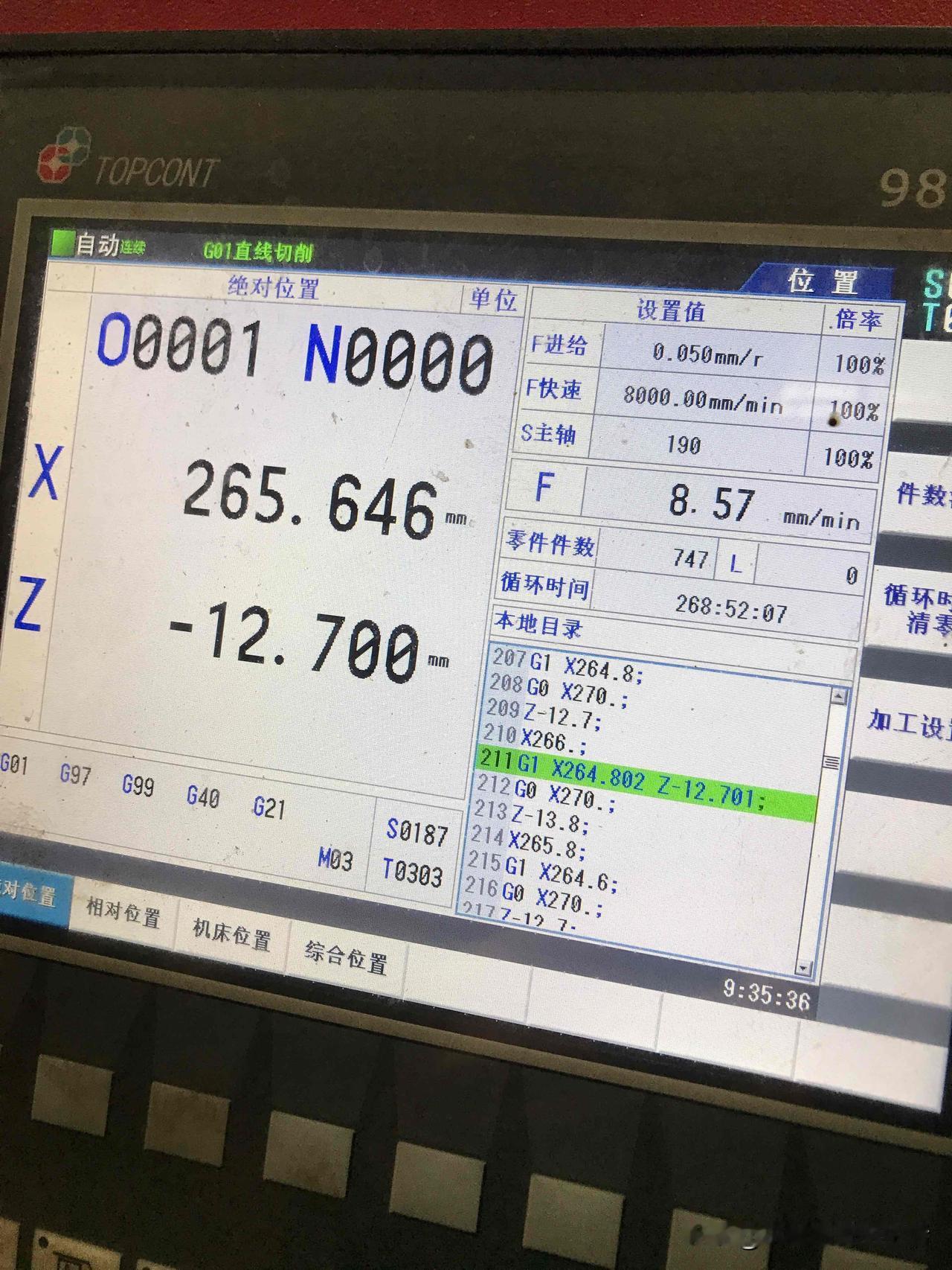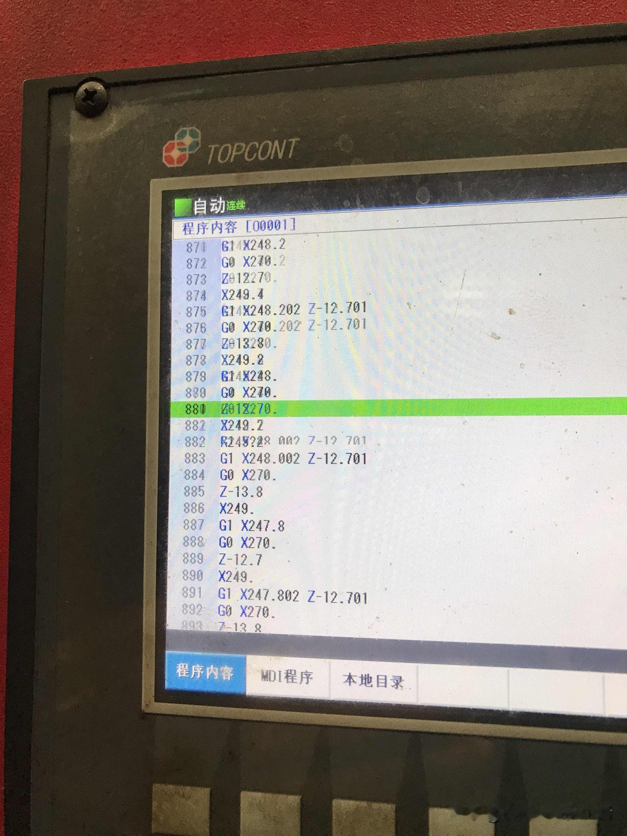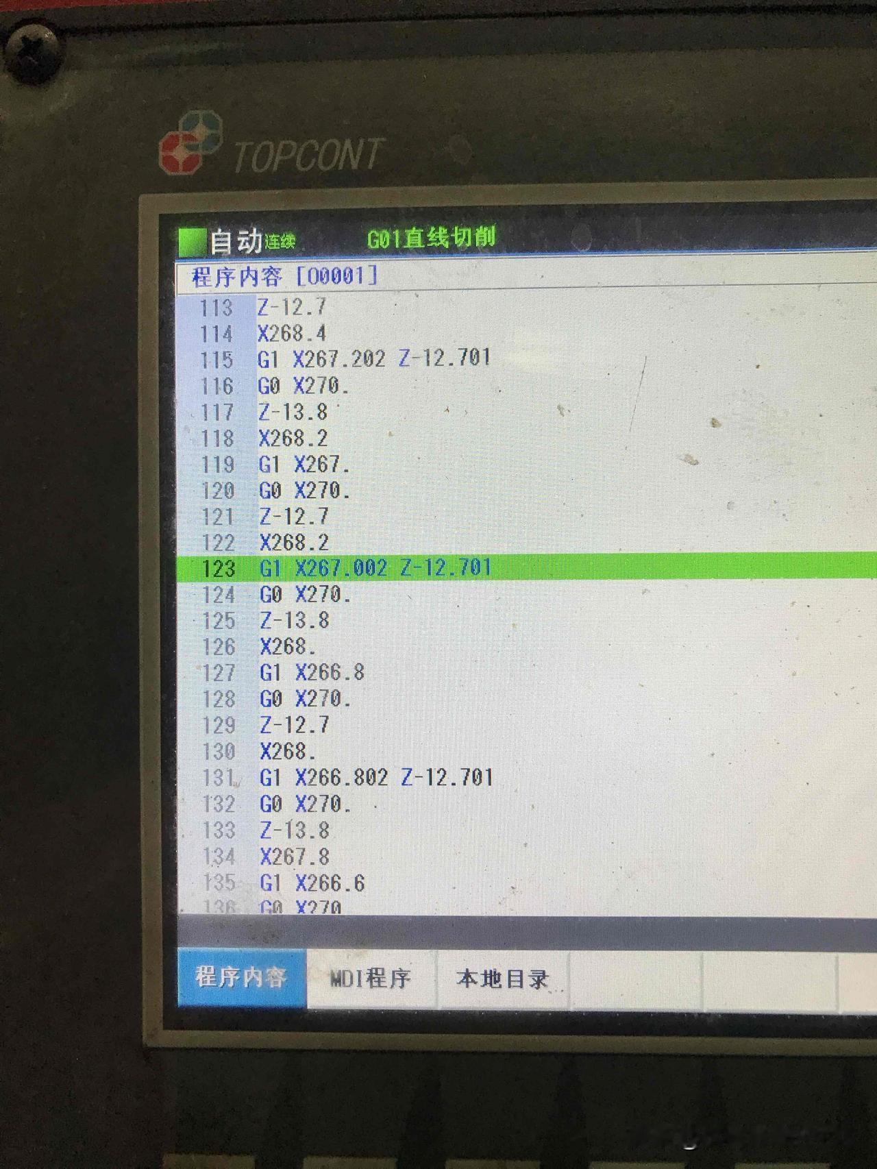 这个工件现在我觉得没有一点难度,就车一下外圆然后车条单边深12mm的宽4mm槽,大师傅之前试过,车得他发火了,原因就是老卡铁屑,然后挤崩了刀片,他用g75来编程的。用3mm刀粒,M3s190g0x271Z-13.1