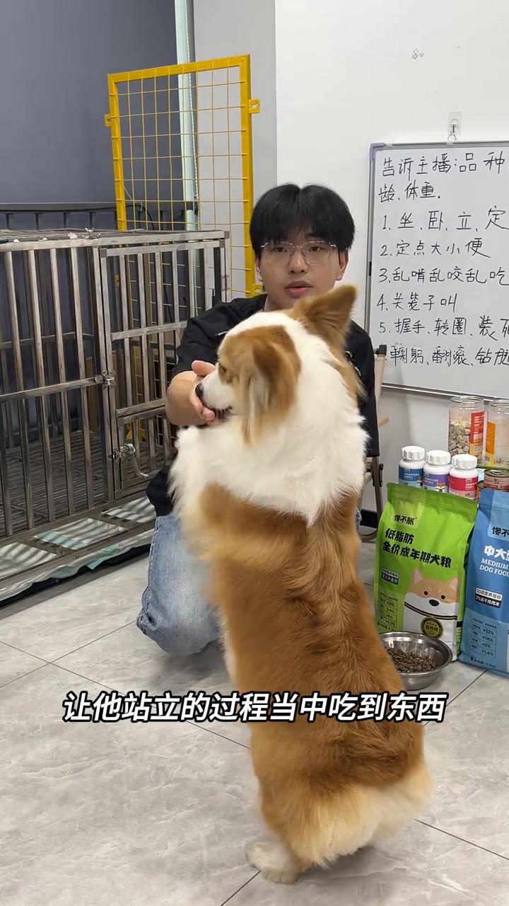 ·然后让它在站的状态下可以吃到东西它就愿意站,让它站立的过程当中吃到东西。