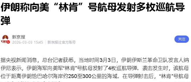 伊朗这次直接对着美军“林肯”号航母发射巡航导弹,四枚齐射。