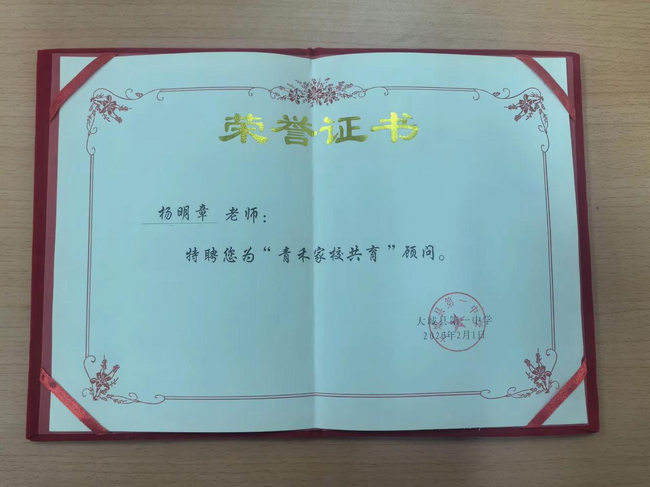 2月1日上午,大城一中“青禾家校共育”成立,我被聘请为顾问。感谢母校给了我继续为