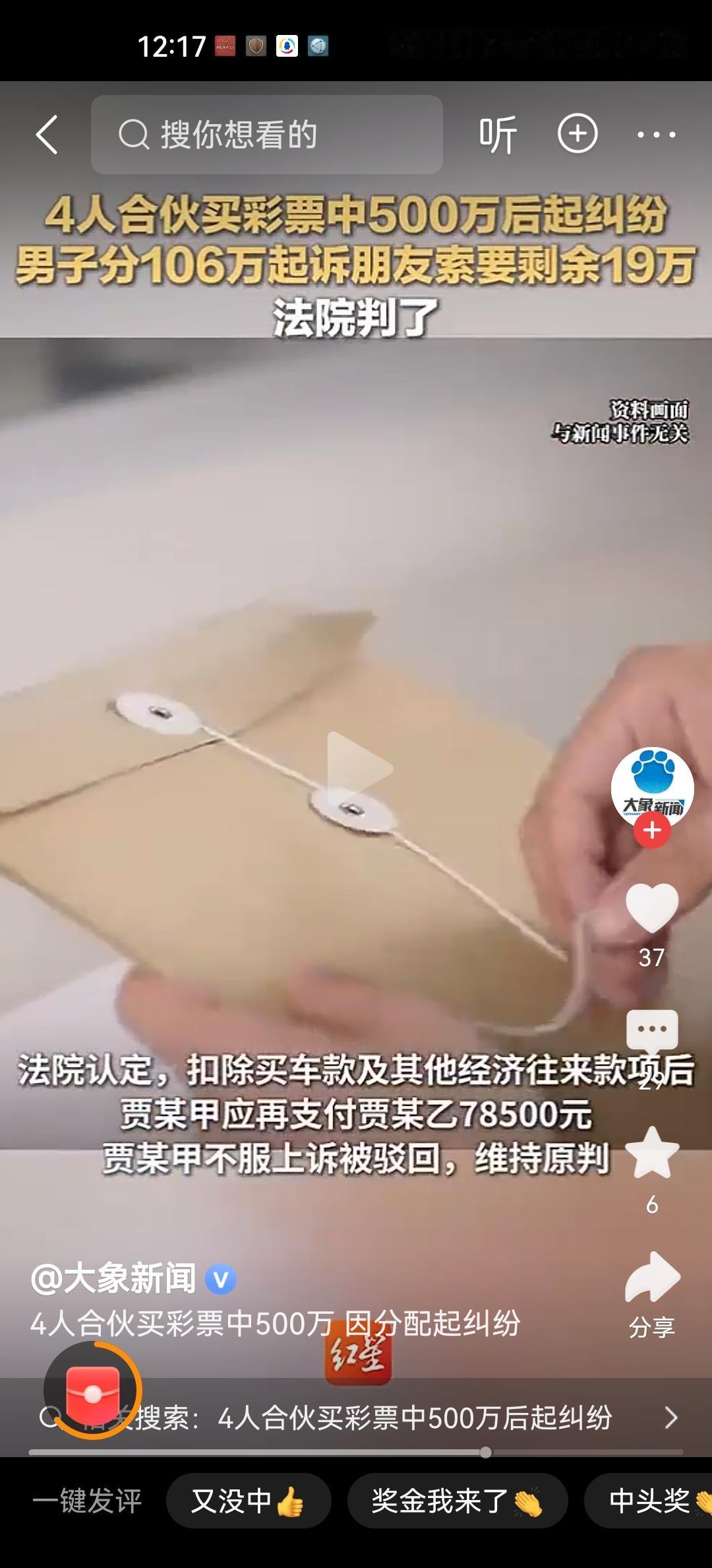 这里面讲了一个“共同创业买彩票后不能苟富贵”的故事。2025年2月18日,贾某甲建一微信群,成员有贾某乙、贾某甲、张某丁、贾某丙四人,约定由贾某甲买彩票,4人平分担款项,中了之后平分奖项。到了7月份,花了140元的彩票中了507.9万。然后4人约定零头7.9万进行共同玩耍消费,由领奖人贾某甲给其他三人每人106万。但是贾某乙拿到款后认为少拿了,起诉法院要求再拿19万。