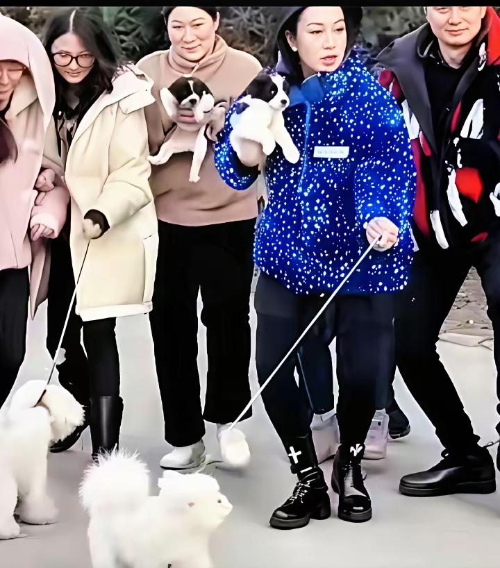 同样是遛狗,二十年前,她明星范尽显,大长腿呈现出傲人的X型,气质爆棚。