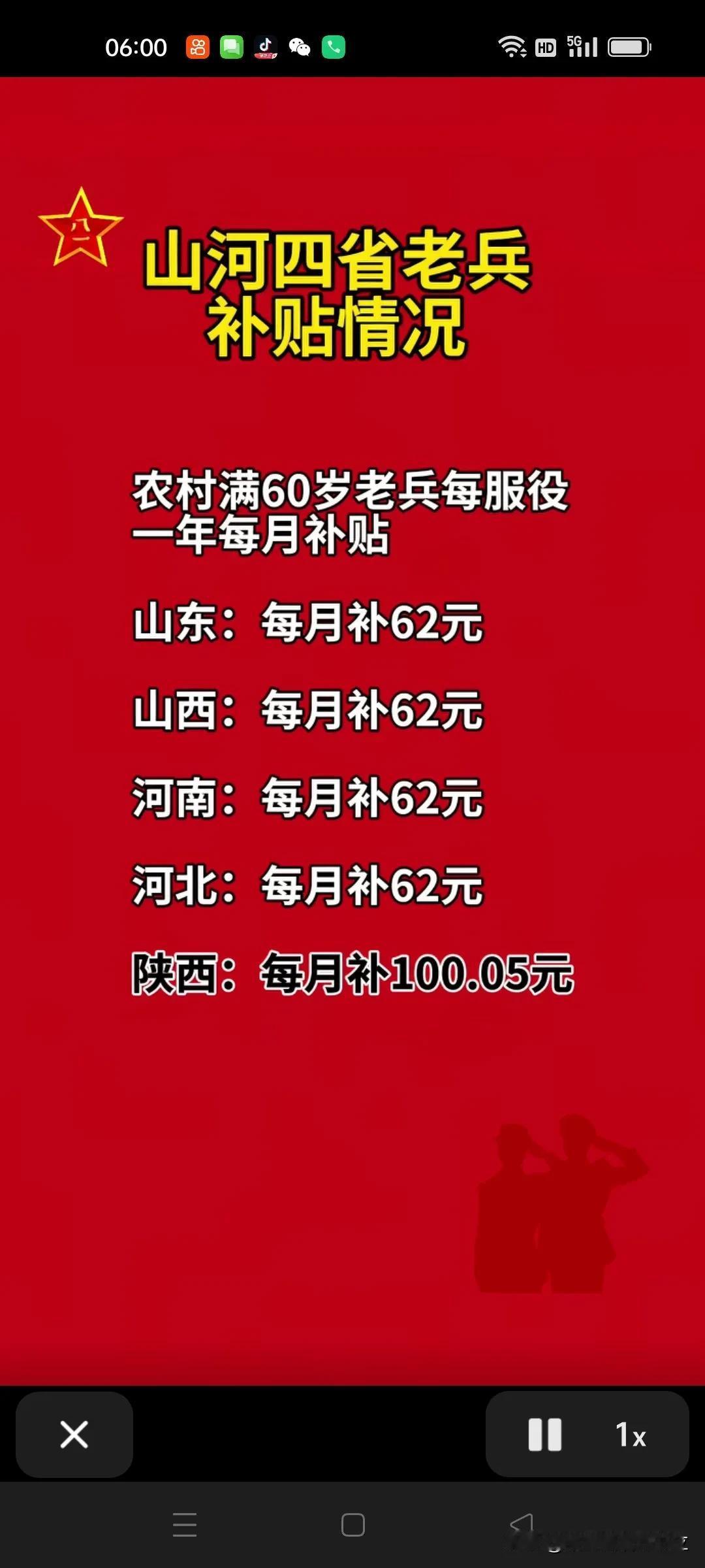 陕西省的农村籍退伍老兵不相信山东、河北、河南、山西省的退伍老兵养老补助会是一个月62元,而反过来山河四省的农村籍退伍老兵,不相信陕西省的老兵养老补助是100.05元。各自认为是全国统一的,我看了大家的留言,也反复查了资料,原来各地的老兵说的都是真的。