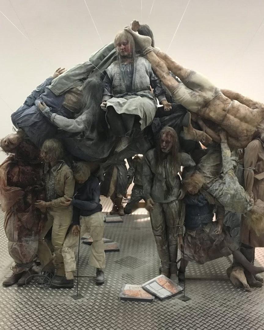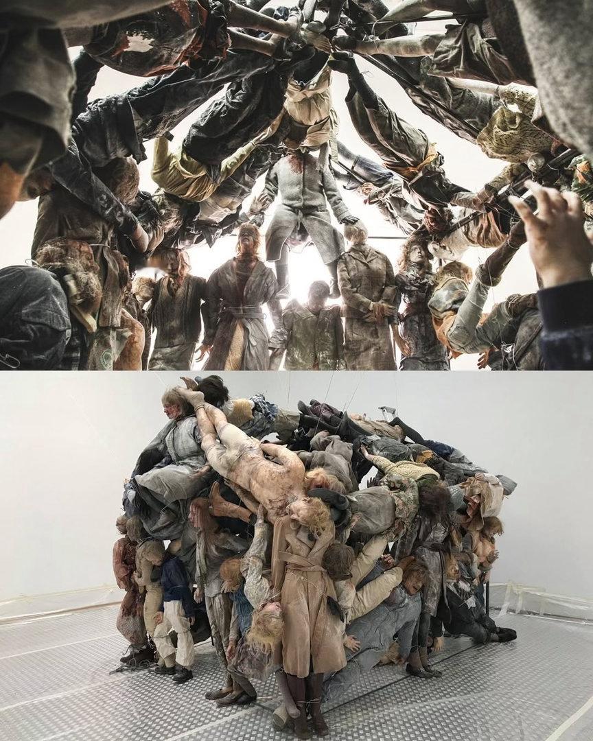 深焦影迷考古 还记得拉斯·冯·提尔《此房是我造》里最后出现的那个由几十具尸体堆积的小屋吗?这个由64具、每具造型都不一样的“尸体”是由树脂制作而成的艺术雕塑。