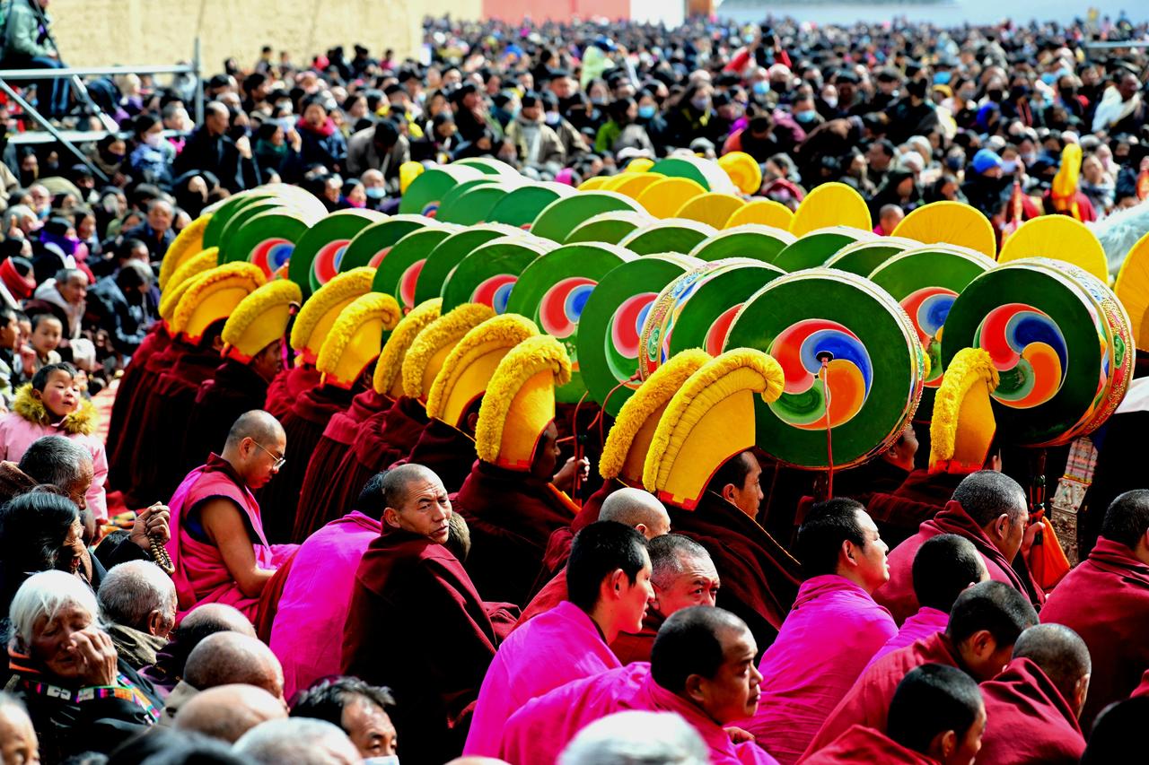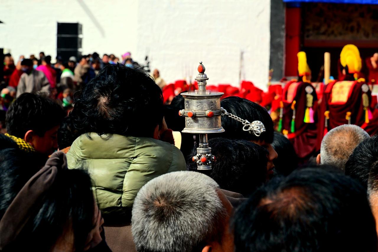 法号沉厚,僧人身着彩衣、戴面具缓步起舞,动作庄重刚劲,在高原天光中透出千年仪轨的肃穆。没有浮华,唯有信仰与岁月交融的厚重——正如藏族同胞所信:“信仰是刻在心里的路”,每一次转经、磕头、法舞,都是向净土迈出的坚实一步,那份质朴而神圣的力量,直击心底,久久难忘。