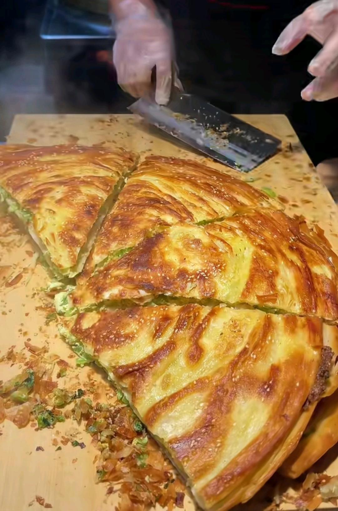 最近发现在威海黄家沟市场的这种“香酥蛋饼”挺火的,看着老板切这种饼时发出那种酥脆的声音感觉特别有食欲,单看这个颜色就非常想吃,一些吃过该美食的顾客也说非常好吃,而且一这些网友还留言说这种饼在刚出锅时最好吃,凉了后口感就不如刚出锅时了,也不知道是真是假,改天有时间我一定去这个市场尝尝这种美食,真的是第一次见过这么有食欲和酥脆的饼。