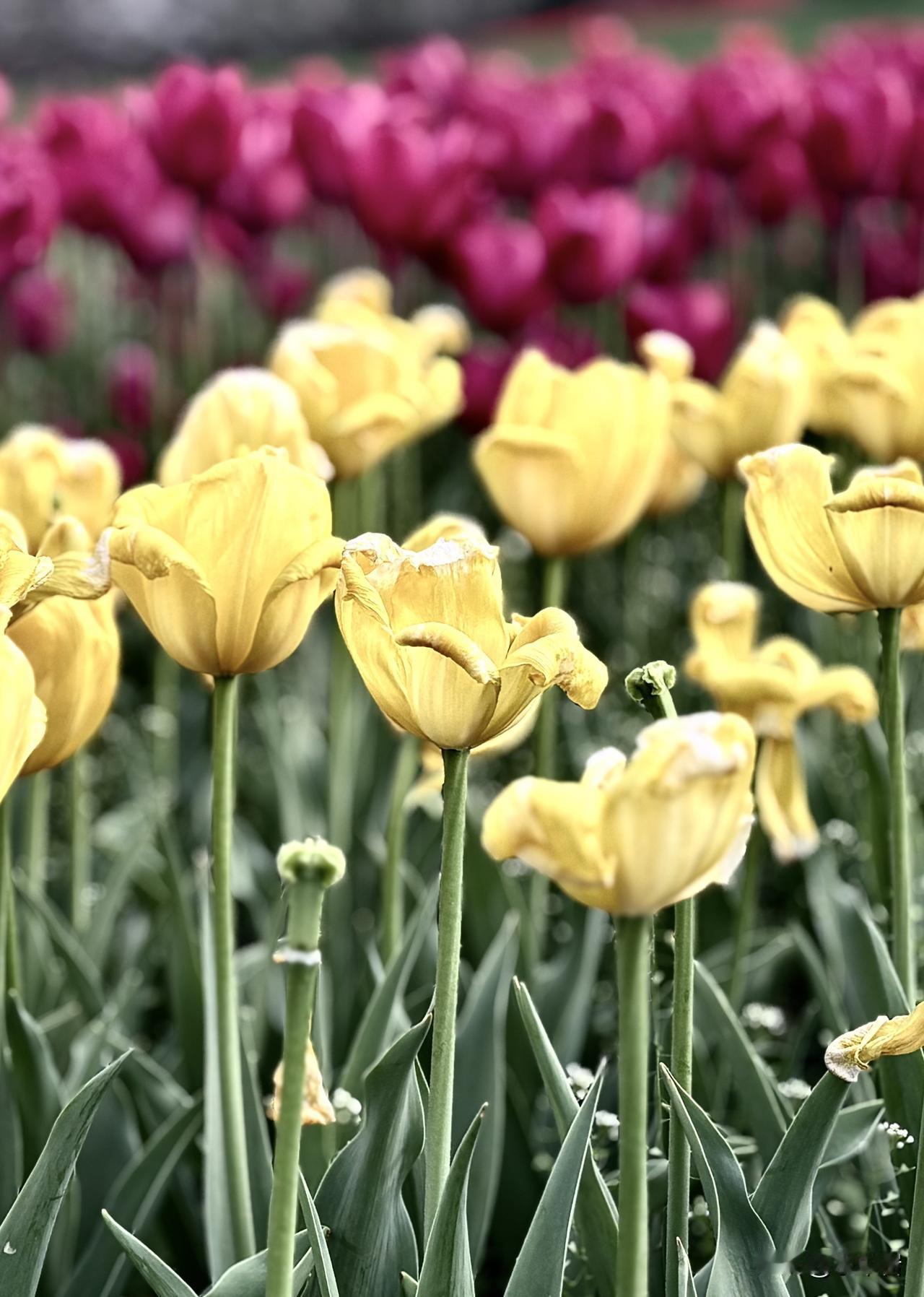 3月25日,在杭州西湖边的太子公园游玩,看到了九种不同色彩的郁金香。这九种郁金香,有的正迎风怒放,像一群青春少女,美的娇美艳丽;有的是含苞待放,像一株株“含羞草”般地含蓄低敛,形象端庄清丽;有的却由盛转衰,像一群迟暮的美人,花枝凋零。我用手机人像摄影模式中的舞台灯光,拍摄了下列图片。因为,拍照的人太多,没有空间和时间选景构图,忙忙地拍了十几张图片,过后看看还有点趣味,晒出来供条友们欣赏。