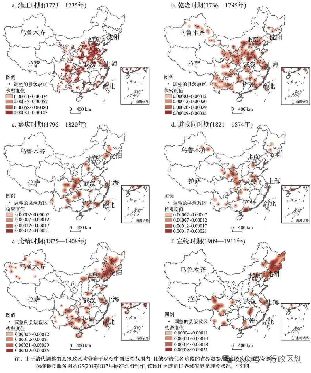 全国时辖一百八十一府、直隶州七十一州、单州一百七十州六十厅、一千三百零六县。图内凡省名下还标明了至北京的里程。此图于清代乾隆五年(公元1740年)、光绪三十一年(公元1905年)两次重订,是研究清代政区地理的舆图类重要文献。