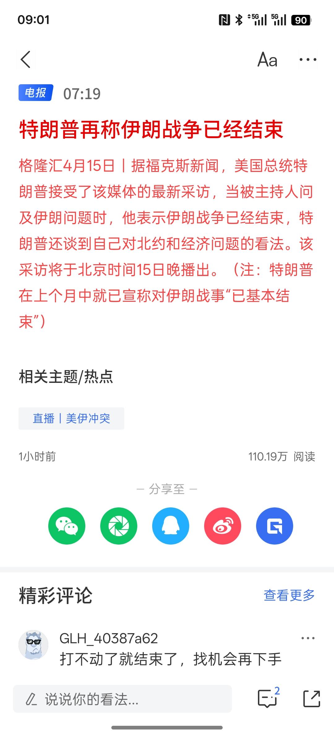 美伊战争已经结束?特朗普原话:“接近”结束,根据美国方面的信息,美国对伊朗的战争冲突已经接近结束的尾声!接下来美国与伊朗的第二轮谈判,而且美国也在向伊朗施压,希望与伊朗达成停火协议!也就是说,战争很快即将结束!美国与伊朗方面都在维持这种脆弱的停火协议!为接下来的谈判留足时间与空间!美国不想在伊朗这个问题上面持续深究!更不想打成持久战