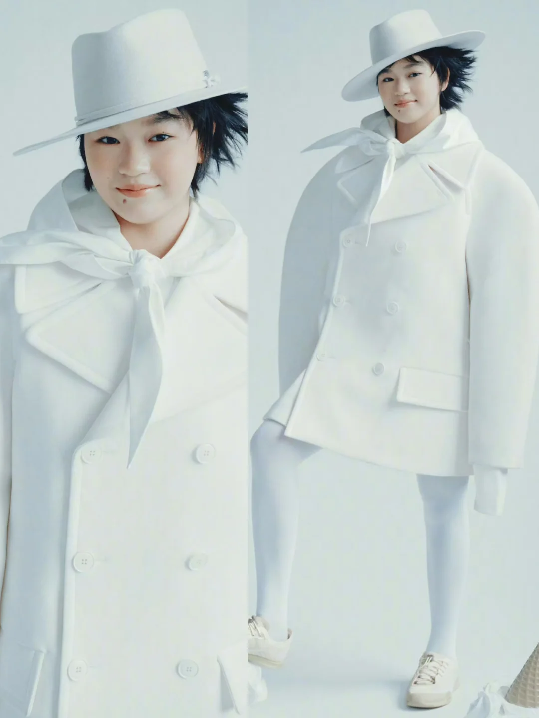 ✅ 高级简约风:all white look简约高级,双开门大衣搭配礼帽完全让人眼前一亮的感觉,就很大气!脚上这双「菲林扶风」薄底鞋,又很加分,让整体造型轻盈日常很多~