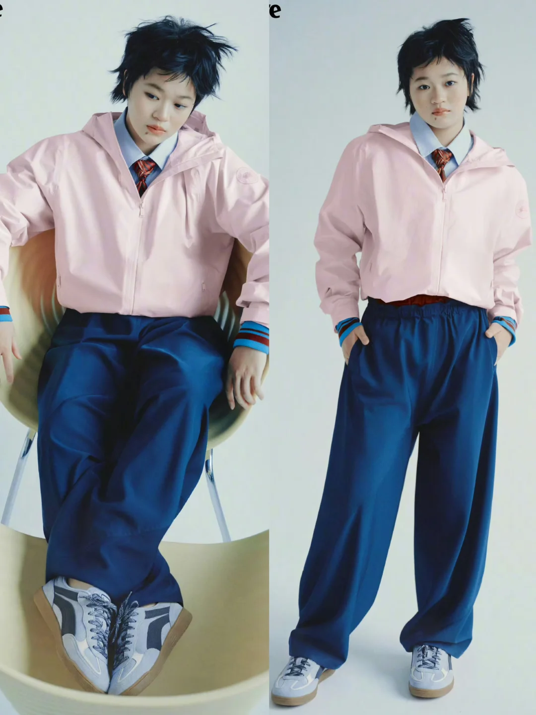 ✅ 甜酷学院风:粉色冲锋衣+「菲林心澜」薄底鞋,甜妹与酷盖一秒切换;袖口的红蓝撞色,让整体更显层次