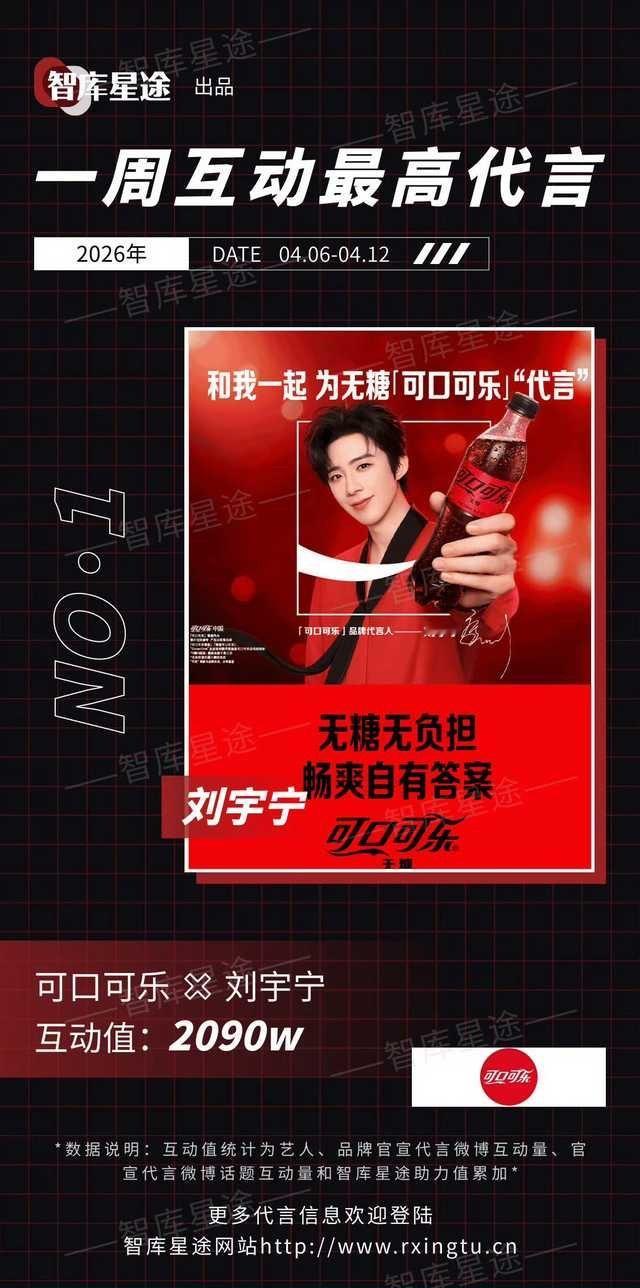 刘宇宁一周内官宣两大顶级国民商务品代可口可乐➕上好佳🔥时隔12年国内首位可口可