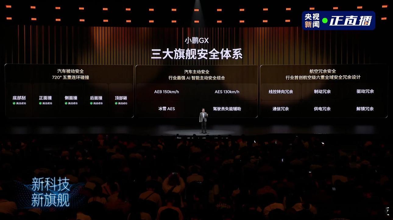 新科技旗舰小鹏GX今晚预售央视称小鹏GX为科技大成之作小鹏GX主动能力拉满:150km/h就能触发AEB紧急制动,130km/h还能紧急避让,冰雪路面也不怕。最让我惊喜的是“驾驶员失能辅助”——万一你开累了没反应,它能自己变道、找应急区、平稳靠边停车,全程不添乱。