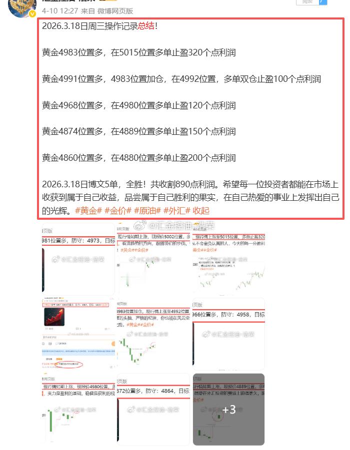 2026.3.18日周三操作5单,全胜,共收割890个点利润网页链接