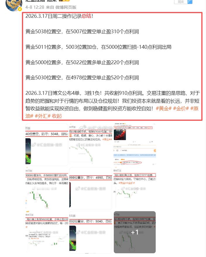 2026.3.17日周二操作4单,3胜1负,共斩获910个点利润网页链接