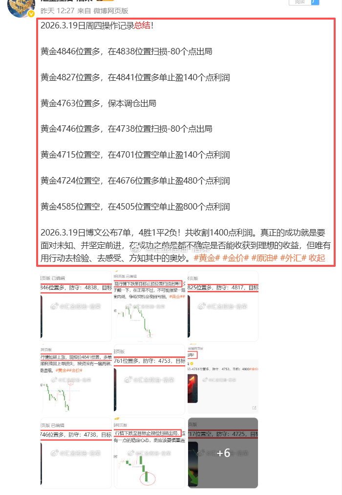 2026.3.19日周四操作7单,4胜1平2负,共收割1400点利润网页链接