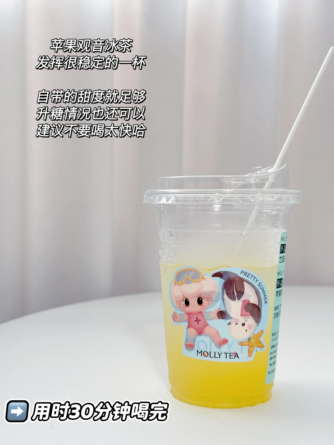 苹果观音冰茶,发挥很稳定的一杯〰️自带的甜度就足够,升糖情况也还可以,建议不要喝太快哈[okR]
