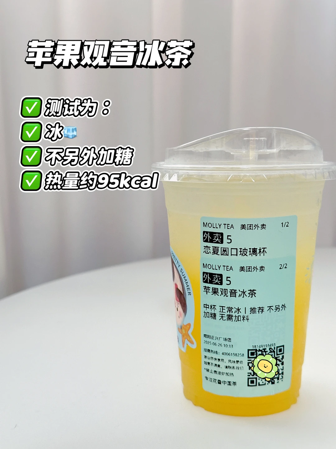 测试为:冰🧊不另外加糖 热量约95kcal
