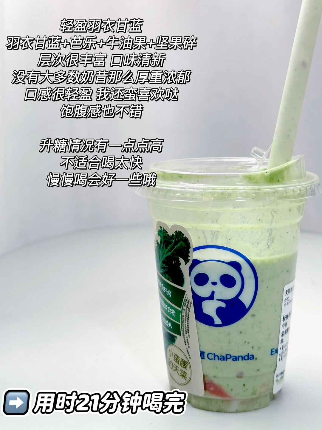 轻盈羽衣甘蓝,羽衣甘蓝+芭乐+牛油果+坚果碎,层次很丰富,口味清新,没有大多数奶昔那么厚重浓郁,口感很轻盈,我还蛮喜欢哒,饱腹感也不错[鼓掌R]升糖有一点点高,不适合喝太快,慢慢喝会好一些哦〰️
