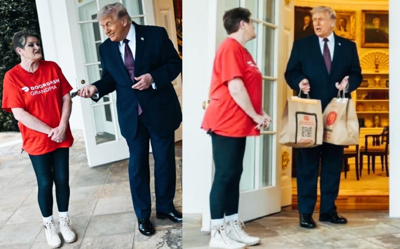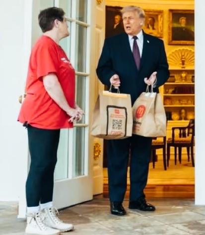 特朗普外卖点的什么呢?饭量这么大吗? 特朗普拿着钞能力在跟外卖员炫耀吗? 特朗普