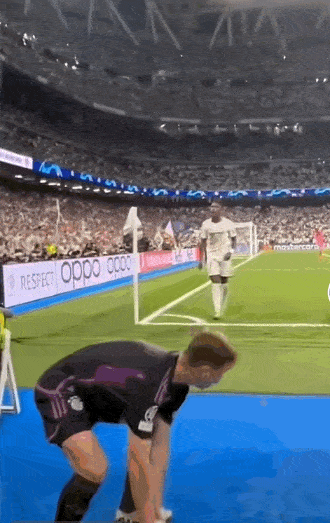 想到基米希和维尼修斯在角球边的名场面,基米希去界外捡球回来把球给维尼修斯,第一次,维尼修斯不接,球掉落地上,基米希抱起,再放到维尼修斯怀中,维尼修斯照样把球弄到地上,基米希扭头向另一边,倒退疾走。