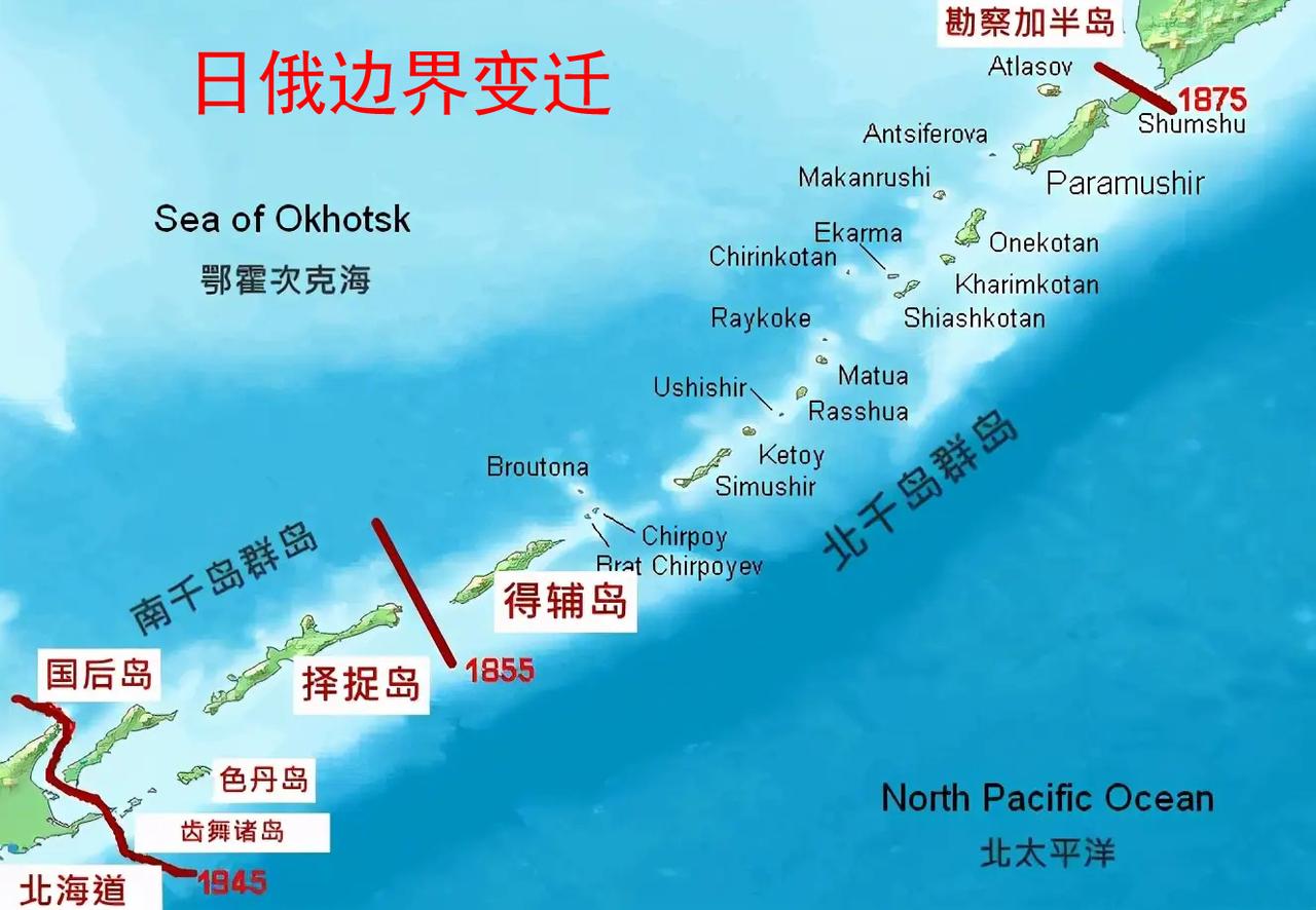“北方四岛”位于太平洋西北部千岛群岛南端的岛屿群,总面积5038平方公里,由择捉岛、国后岛、色丹岛和齿舞群岛组成,其中择捉岛面积最大(约3200平方公里)。1945年苏联根据《雅尔塔协定》出兵占领四岛,实际控制至今。日本长期坚持要求苏联(俄罗斯)归还“北方四岛”,并将其作为缔结日俄和平条约的前提条件。二战已结束81年,日俄和平条约仍未签署,令人遗憾。
