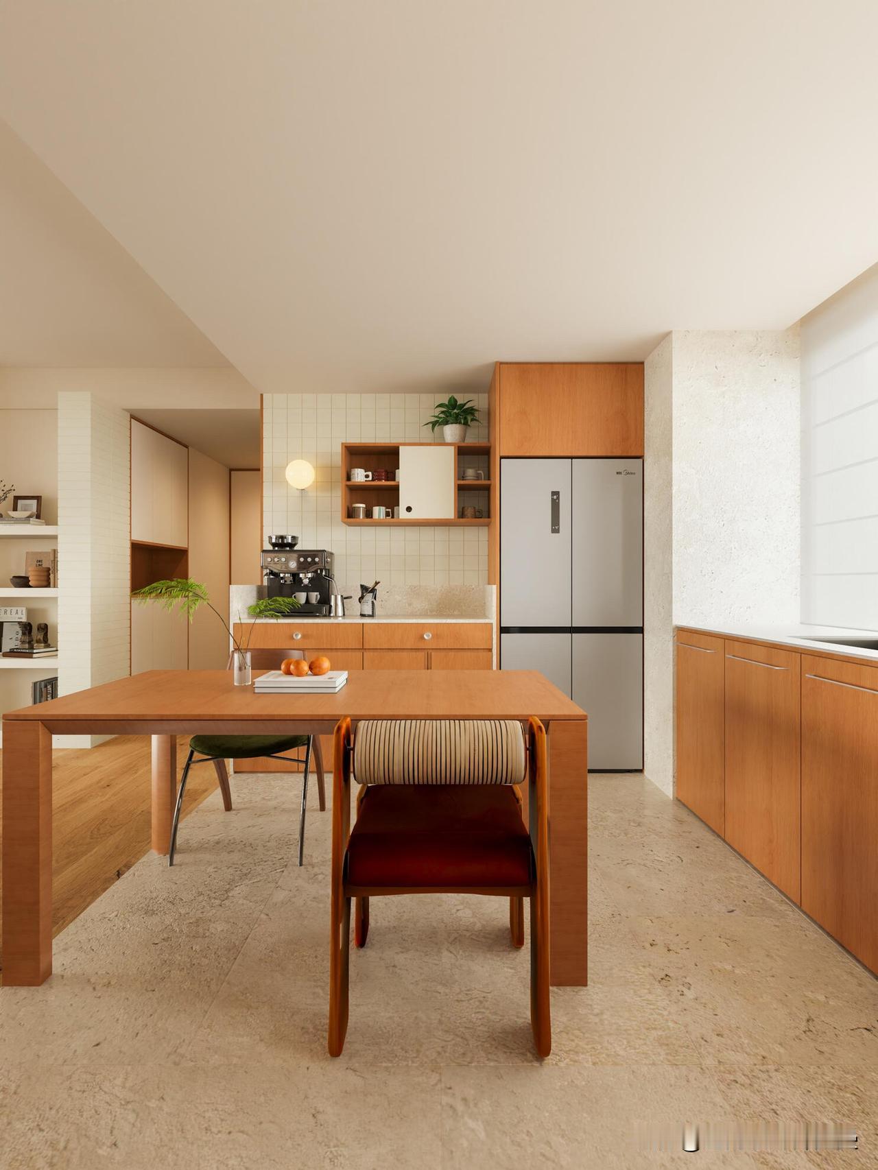 [一R]温润质朴的柚木色作为整体的空间基调,明确的空间比例划分界定不同的功能区域,形成不同的空间体验。