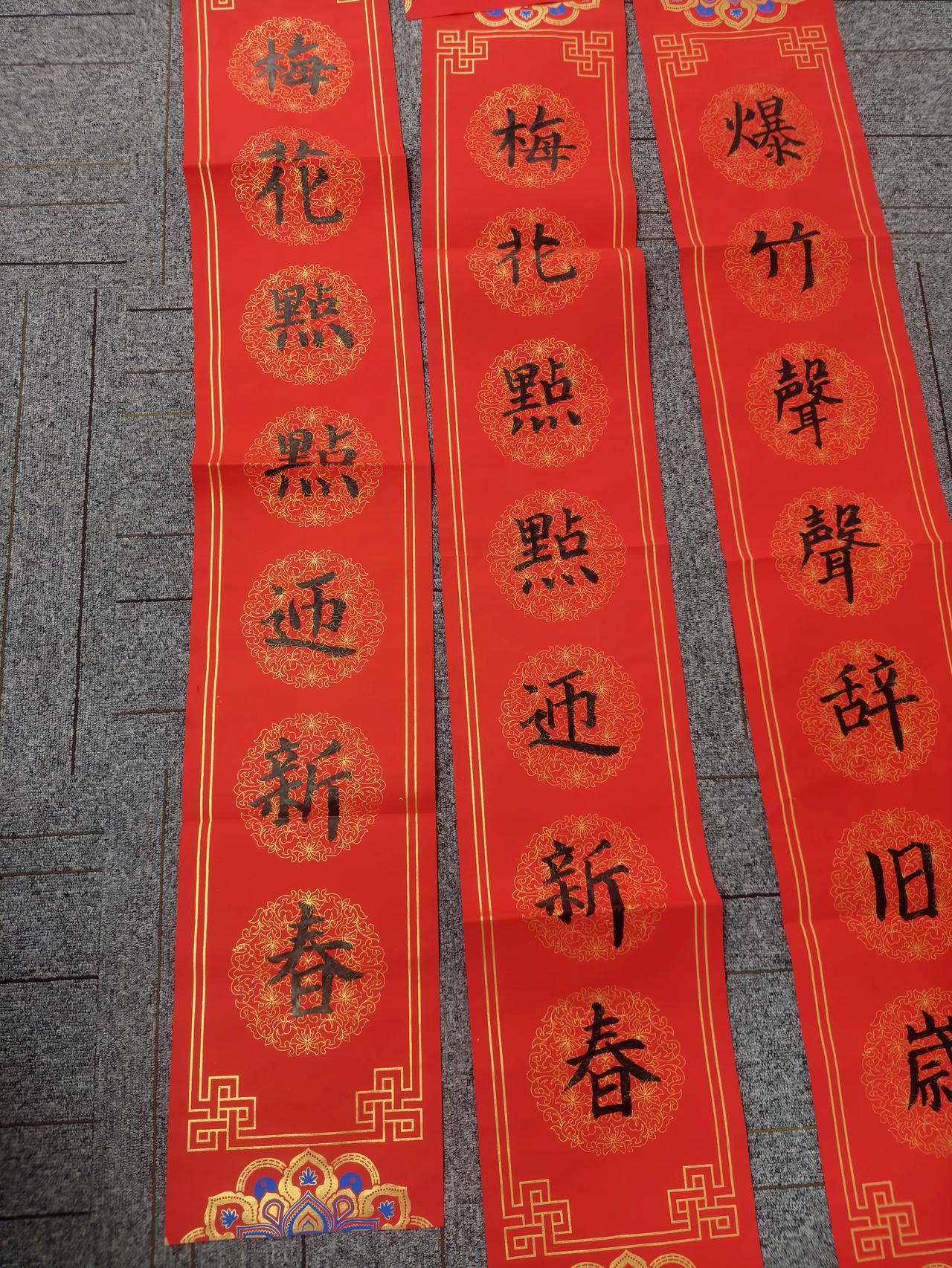 今天是除夕,一大早我带着自己写的春联到我妈家,准备给她贴春联。老妈说她前几天在集市上看到有人免费写春联,就顺手要了两副(下图1和2)。