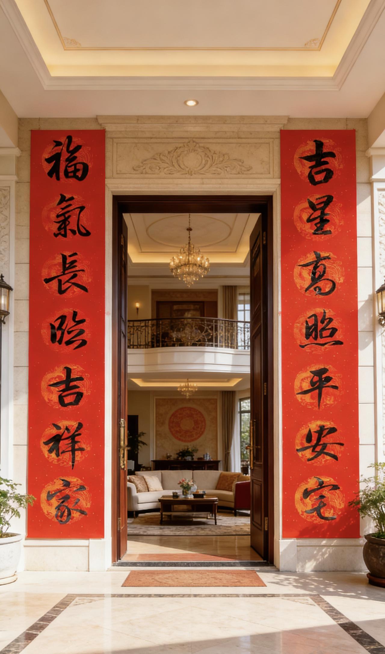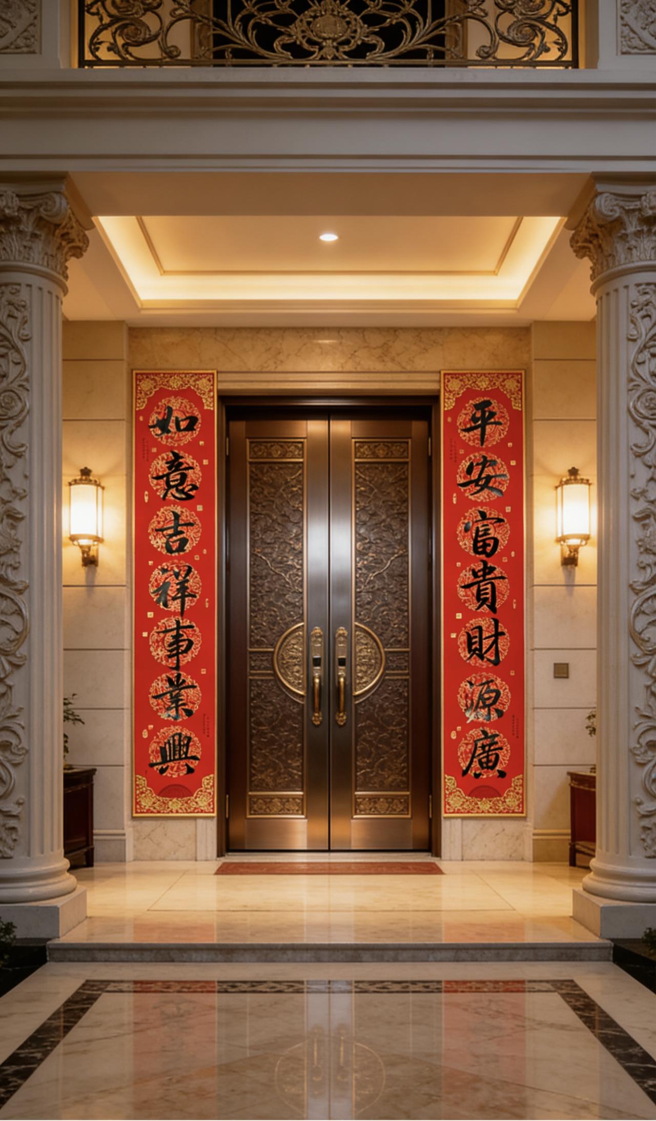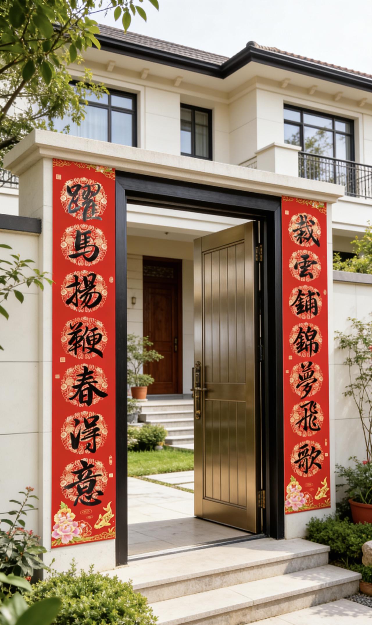 这是我最近写的春联。用AL制作后贴在门上感觉效果还不错。常听人说:“字怕上墙”,字一但贴在墙上,一眼看上去不别扭,说明结构就稳了。春联
