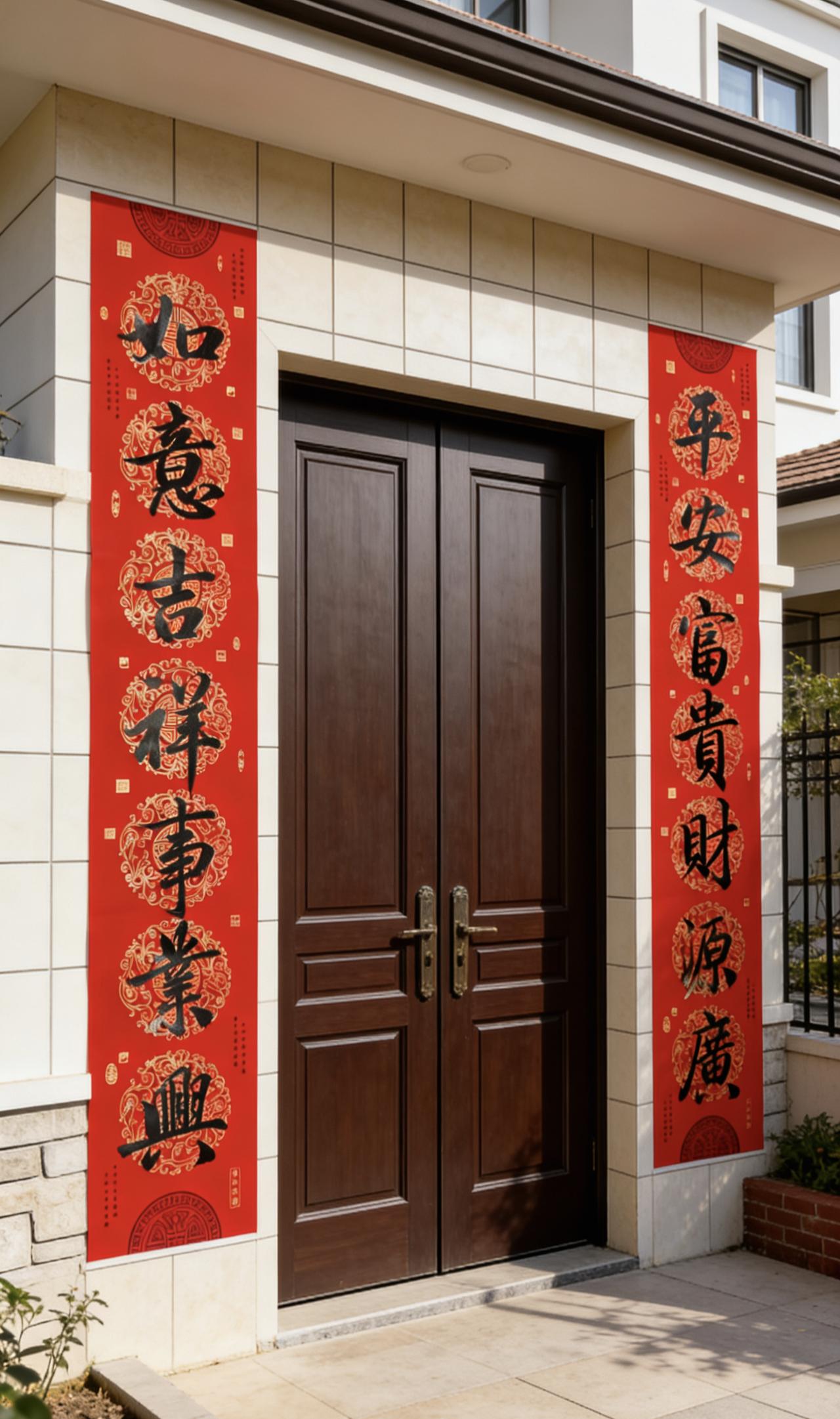 这是我最近写的春联。用AL制作后贴在门上感觉效果还不错。常听人说:“字怕上墙”,