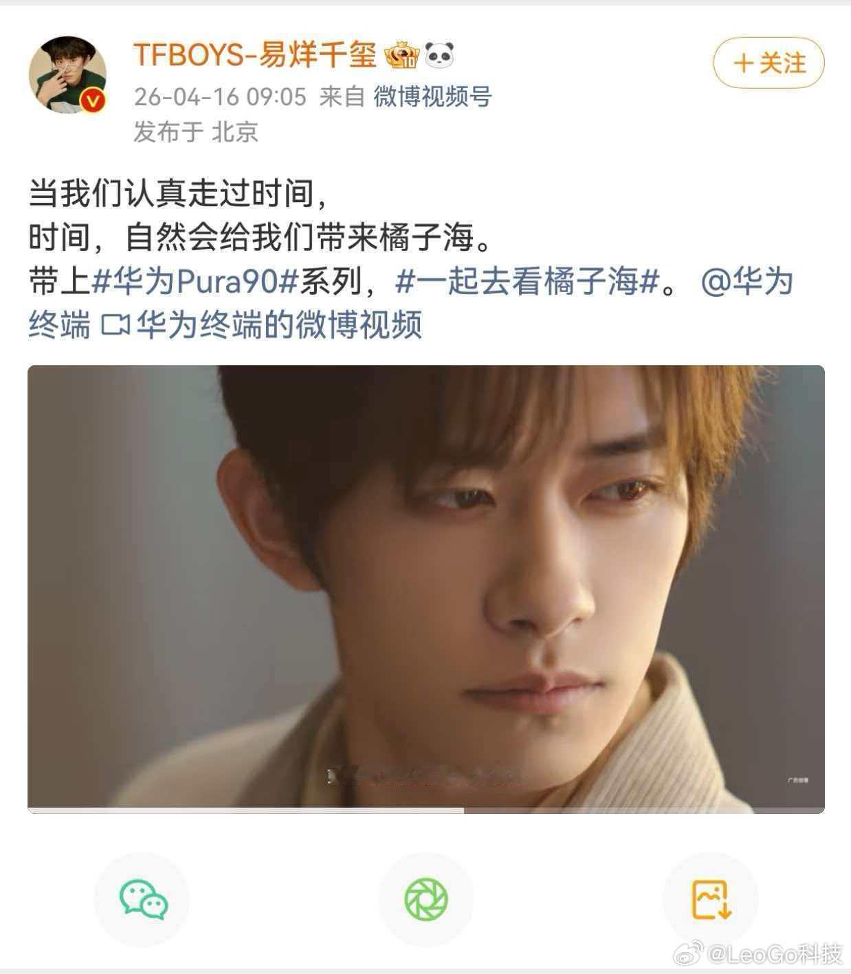 啊啊啊!终于官宣了!4月16日,华为Pura 90系列代言人就是易烊千玺!和千玺一起演绎“橘子海”美学,那种纯粹、突破、独创、先锋的感觉,真的太配了~“追逐本心,锐意向前”,整个氛围治愈又松弛,像日落海边慢慢走一样舒服。🍊🌊 易烊千玺追逐本心锐意向前易烊千玺代言华为Pura90 易烊千玺 华为