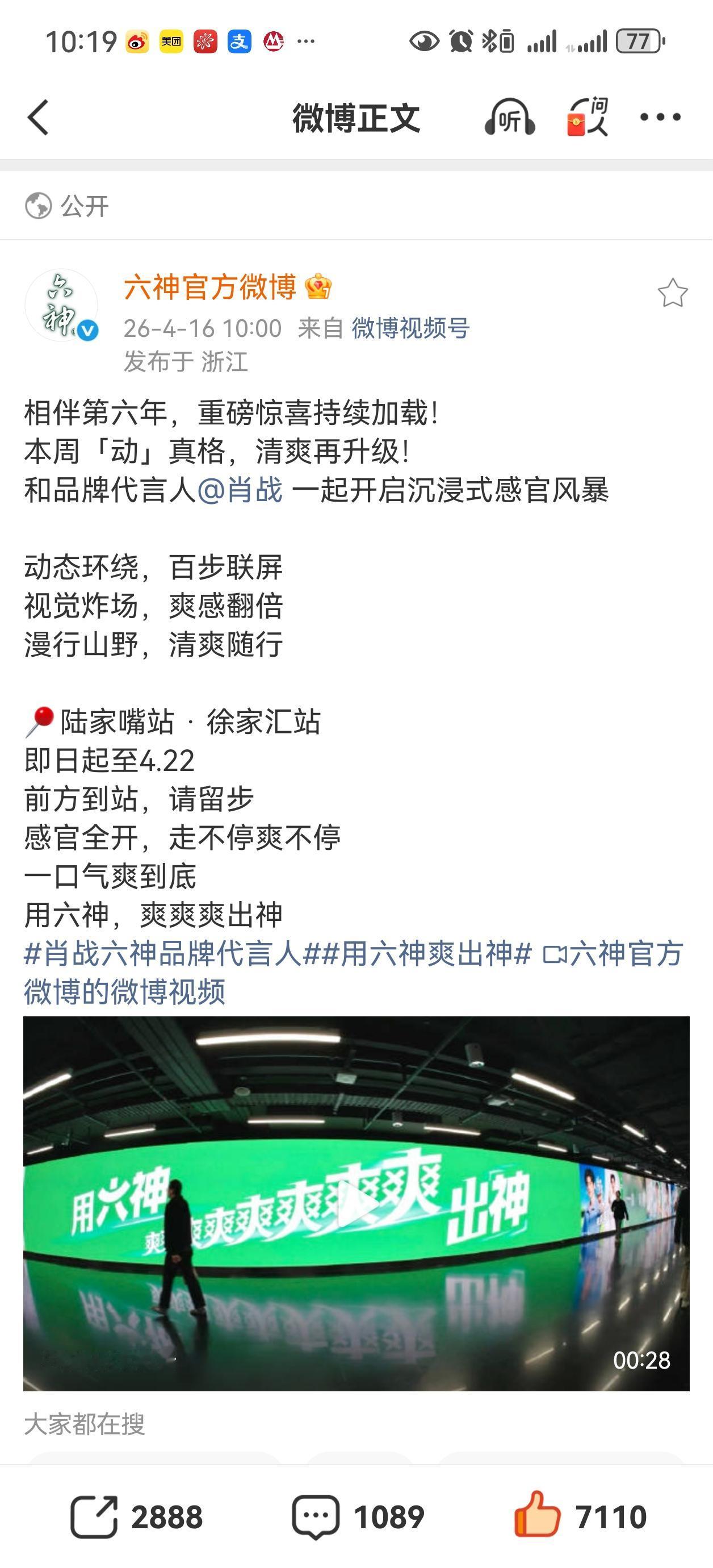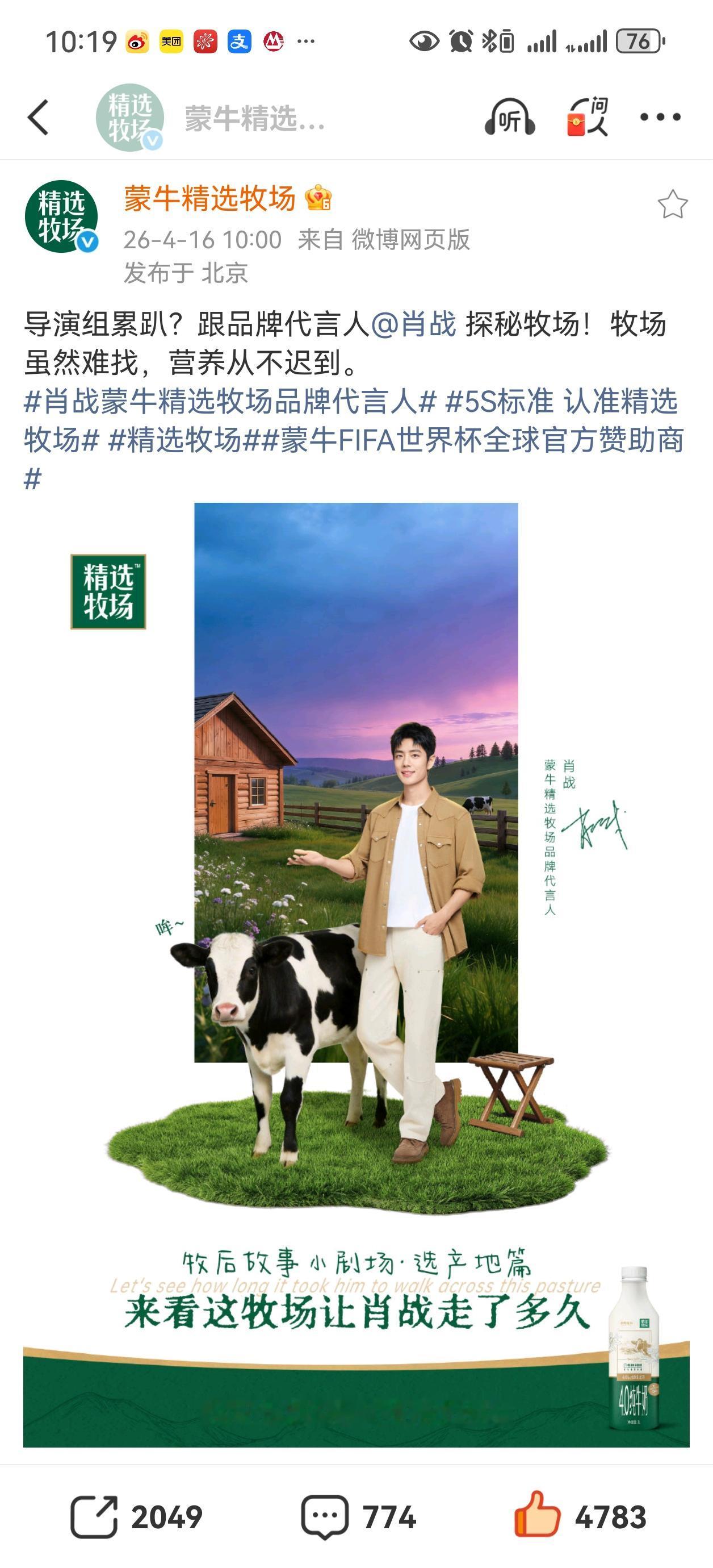安吉尔续约了,六神六周年线下又铺大屏了,精选牧场也更新了,肖战的代言品质都杠杠的[赞][赞][赞]