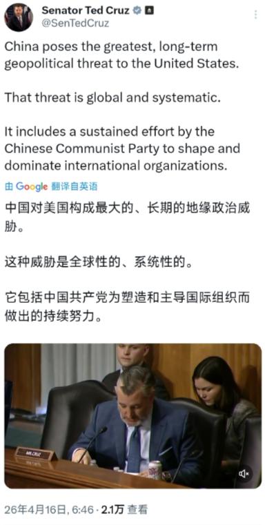 客观来看,中美不是什么 “你死我活” 的敌人,两国经济你中有我、我中有你,气候治理、核不扩散、粮食安全这些全球挑战,也离不开中美合作。克鲁兹这种极端言论,只会加剧中美对立,破坏两国互信,最后损害的是美国自己的利益,也不利于世界稳定。