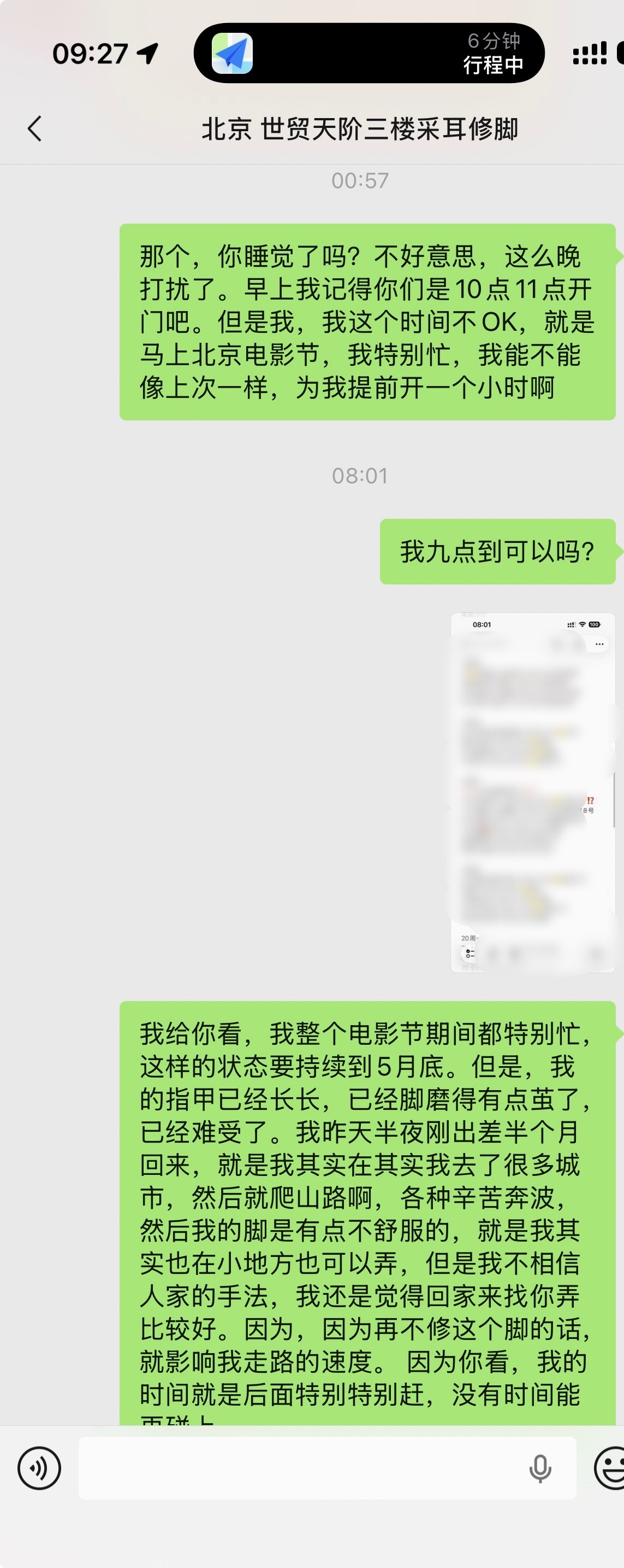 我感觉上午的时间我已经确认完了800件事了。修脚的店十点开门。 我提前协调开。爬