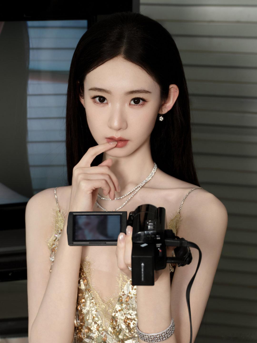 张艺凡鎏金吊带礼裙 张艺凡北京国际电影节造型 张艺凡北京国际电影节造型鎏金吊带