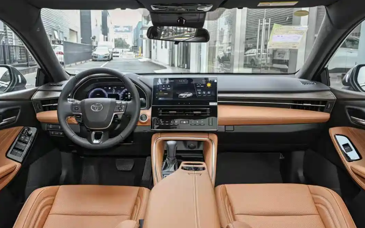 接着咱们再来看看亚洲龙星耀版、雅阁以及凯美瑞他们在内饰方面的差异。在内饰布局上,三款车都差不多,都是一块儿仪表屏+中控屏的组合,区别比较大的就是屏幕尺寸和操控按键的位置这些,那亚洲龙星耀版的内饰和普通版本一样,燃油版是7英寸的液晶仪表+10.25英寸的中控屏,混动版则是12.3英寸的仪表屏+中控屏,它这个内饰比较有亮点的