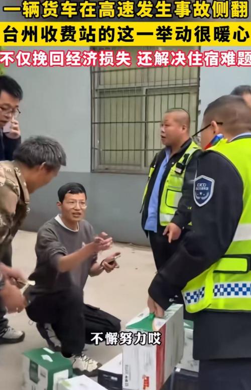 河南货车司机,途经浙江台州高速时发生事故侧翻,价值10多万元的牛奶受损!司机大哥崩溃,这趟货要是赔了,半年的活儿都白干了!可就在他绝望的时候,收费站工作人员的举动,让他一个大汉子哭了!司机大哥:这辈子忘不了你们!