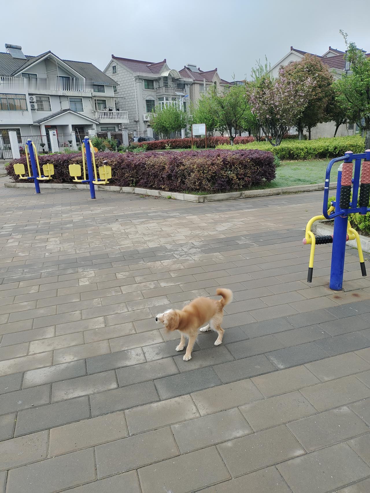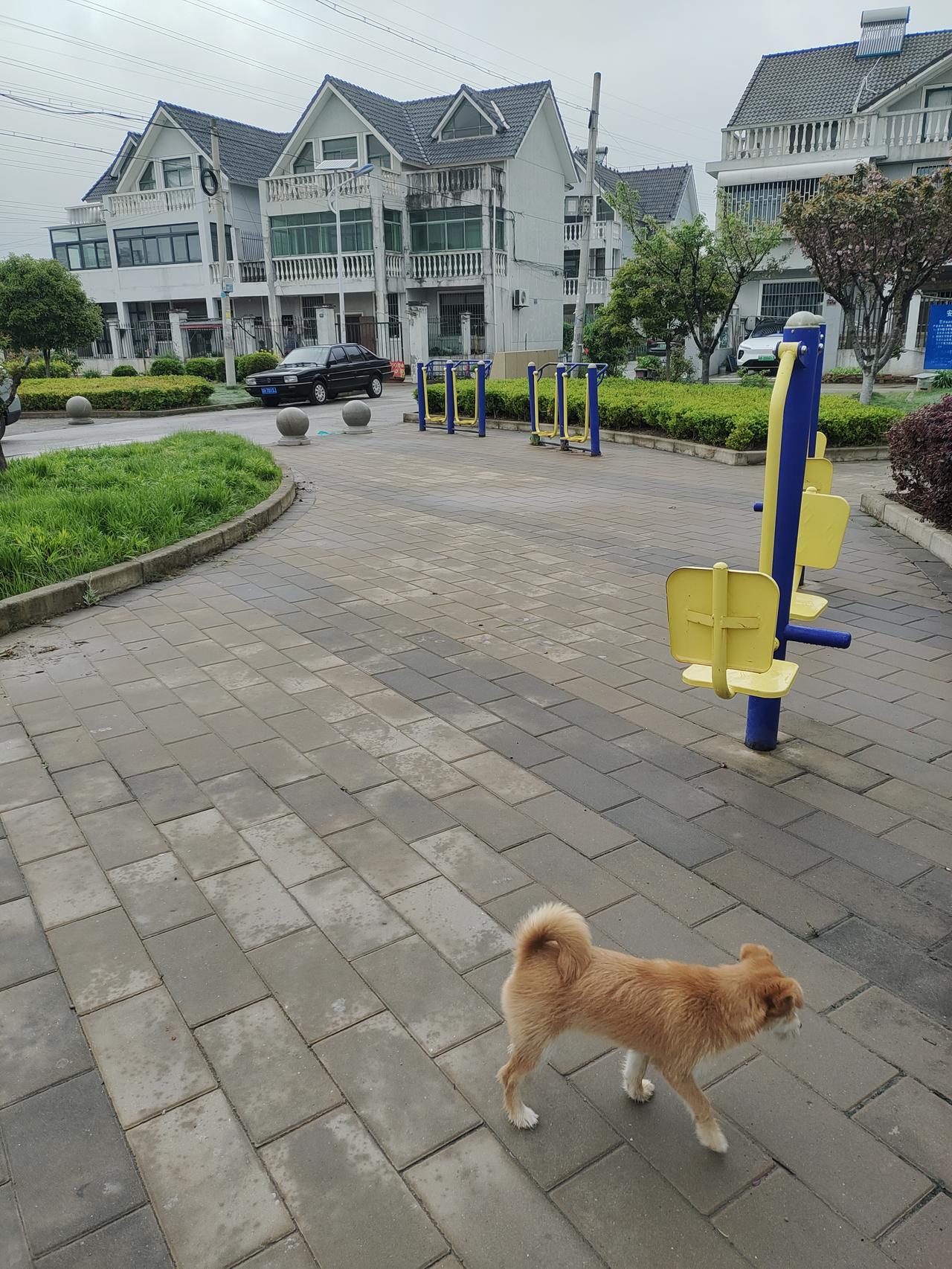 第一件事就是溜小狗狗,先是来到小区里的小广场。
