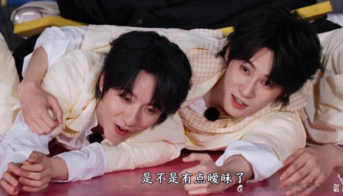 真的不行了,反复回看这段!张真源一把搂过贺峻霖说“是不是有点暧昧”,突如其来的幽默太有综艺效果了,我的笑点来得猝不及防 张真源搂贺峻霖说太暧昧了