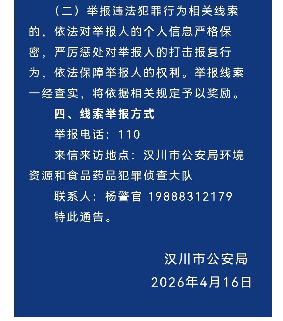 汉川市公安局关于征集假劣肉制品违法犯罪线索的通告